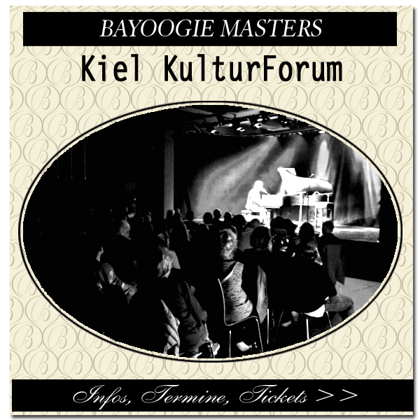 Das KulturForum Kiel in der Stadtgalerie gehört zu den wahren „Schätzchen“ als Austragungsort für die Musikreihe „Bayoogie Masters“. Ein wunderbarer Konzertraum für bis zu 200 Personen, eine tolle Bühne, professionelle Technik und ein hervorragender Konzertflügel. Gemeinsam mit dem Kieler Bluespianisten Georg Schroeter lädt Christian Christl zweimal pro Jahr die besten Musiker aus Blues und Boogie Woogie in den hohen Norden. Partner vor Ort ist das Kulturamt Kiel, die mit einem grandios motivierten Team fest hinter jeder Veranstaltung stehen.